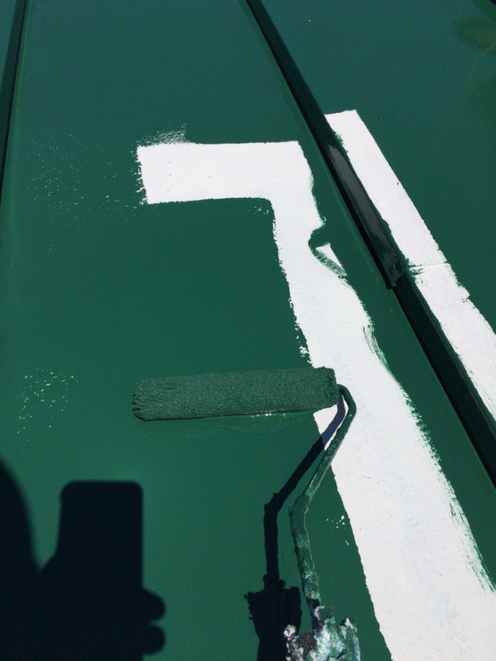 本日は中塗りと上塗り作業をしました。中塗りの作業中になります。