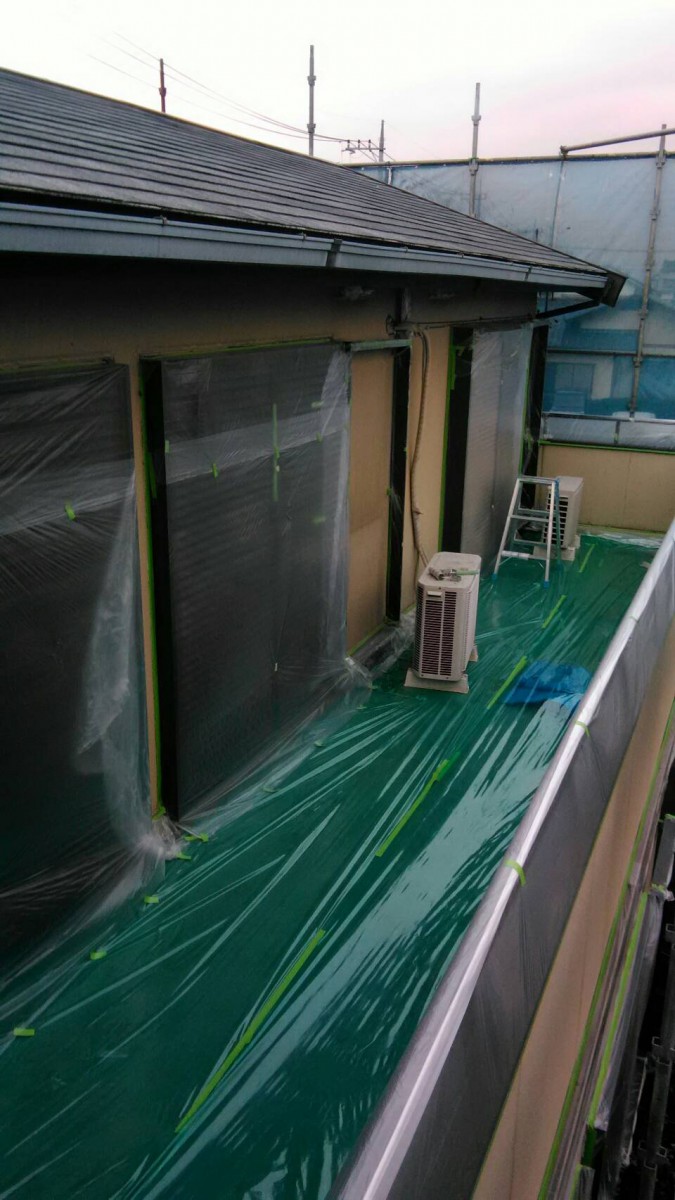 仕上げ部分以外の場所にシートを敷いたりテープを貼り、
