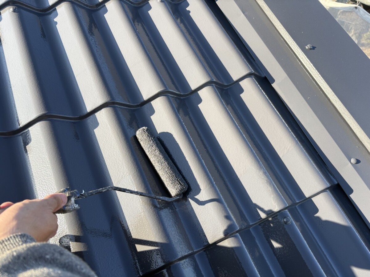屋根は下塗り①・下塗り②・中塗り・上塗りと