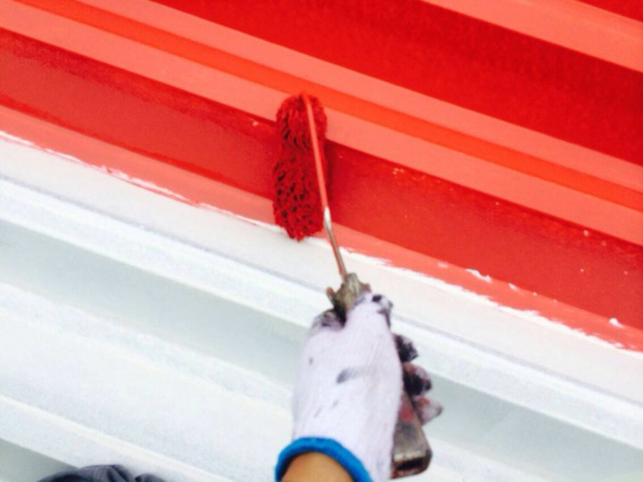 本日は屋根の中塗り作業と上塗りの作業をしました。