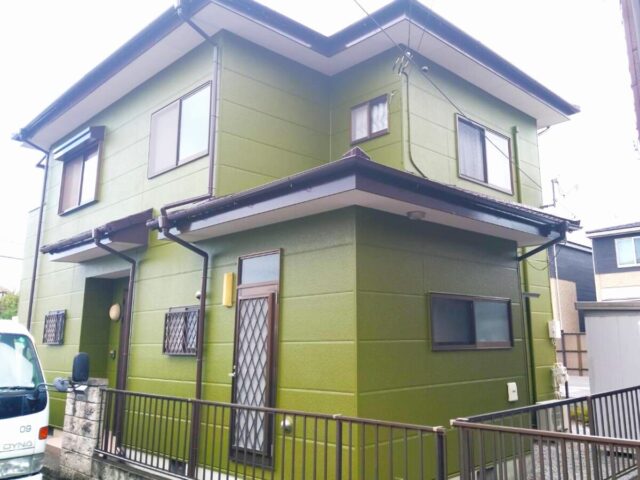 深い緑色にカラーチェンジしました!当初は外壁の色褪せも気になる状態でしたが、塗り替えて印象的なお家になりました♪