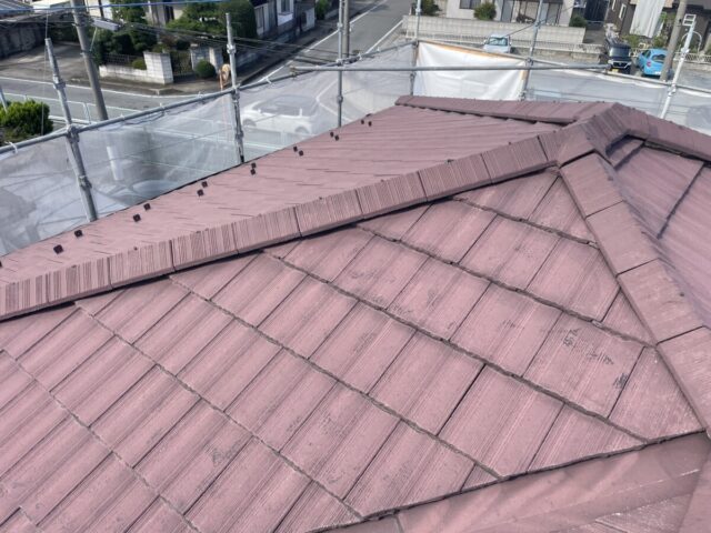 屋根は当初、色が褪め、剥がれや一部ひび割れなどが確認できました。