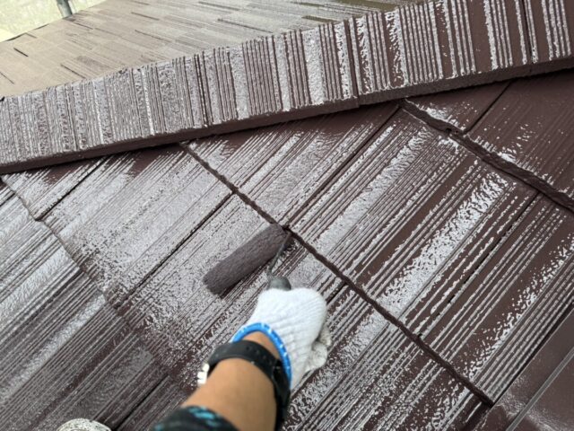 屋根同様、外壁も下塗り2回・中塗り・上塗りと4回塗っていきます!