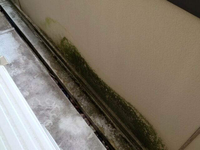 塗装から時間が経つと、塗料の「撥水性(水を弾く力)」が落ちてきます。壁が水を吸い込みやすくなると、藻にとっては「常に飲み水がある快適な住まい」になってしまうのです(>_<)