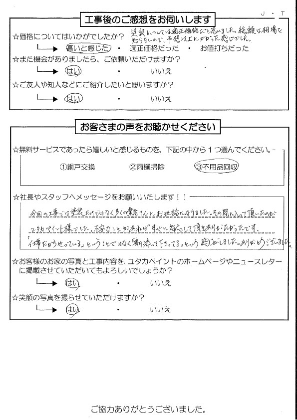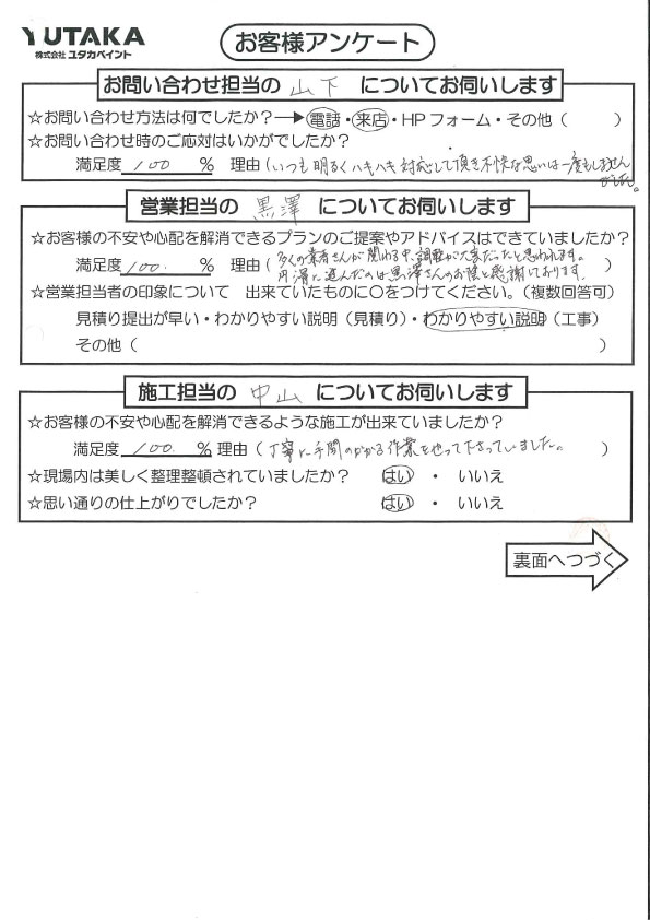 「寄り添ってくださっている」と感じました!ありがとうございました! | 高崎市の外壁塗装・屋根塗装・雨漏りならユタカペイントへお任せ